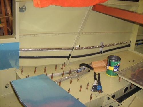 Insulated the A/C hose coming from the compresser in the baggage area and rear seat area. This hose should be hot and I would like to keep that heat contained as much as possible and not dumped back into the cabin, the goal is to get it to the condenser to be dumped overboard. Also worked on the parts for the seatbelt cable passthrough in the corrugations.