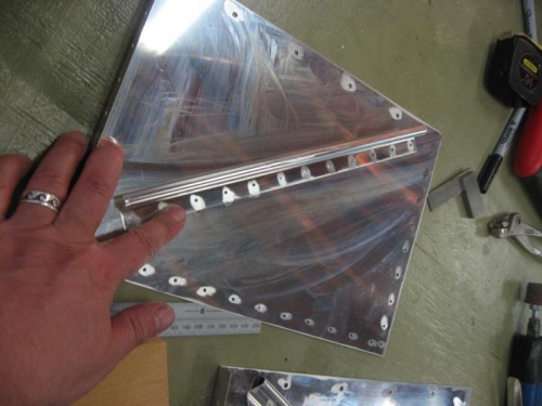 Drilled the rivet holes for the plenum base mount nutplates. Countersunk the holes and dimpled rivet holes.