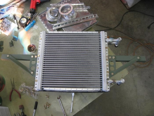 Condenser mount was attached to condenser. The diagonal brace angle was cut to length.