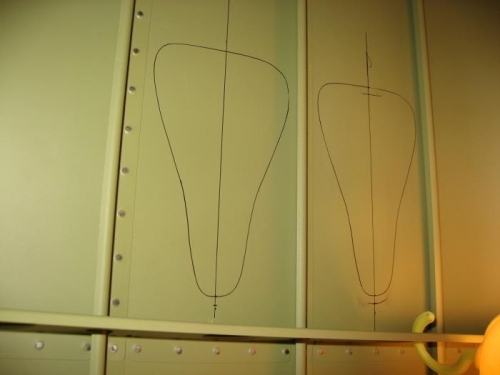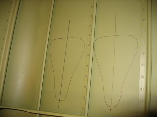 Marked the outlines of the cutouts for the naca scoops. This took a while due to the positioning between the stringers needing to be accurate. I still needed to trim the scoops to make sure they don't overlap the stringers.