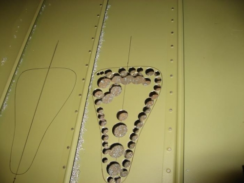 Cut out the openings for the scoops on the right side. Used the step bit to make the starter holes which was tedious. Had one little oops on the forward end of the scoop in the picture but this was patched with resin.