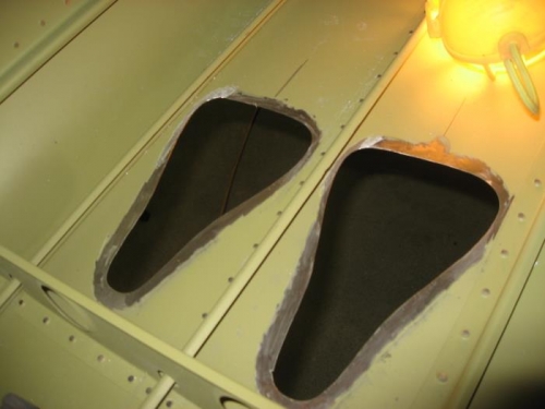Finished cutting, shaping and deburring the scoop openings on the right side. I removed the primer on the border of the opening as the scoops will be bonded with thickened fiberglass resin. I bought some black dye for the resin so it would blend with the carbon fiber of the scoops.