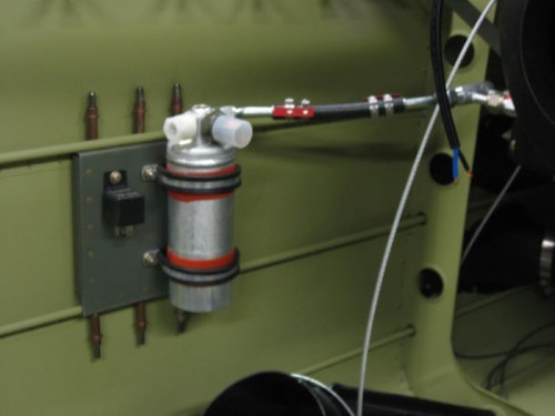 Mounted the receiver/dryer and the condenser power relay which will take the output of the pressure switch from the receiver/dryer as a safety against actuating the condenser and compressor if the pressure in the system is too low or too high.