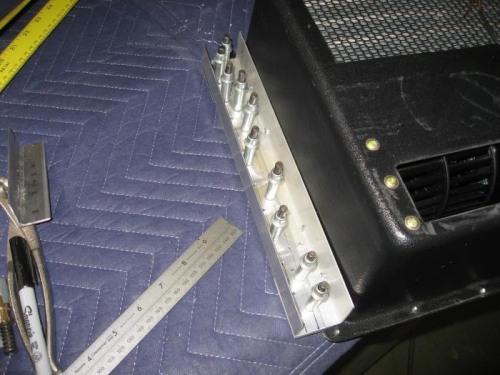 More work on the evaporater reinforcement. I am adding a couple of heavy aluminum straps across the back of the evaporater to reinforce it. These will be attached with pulled rivets. I also am adding angles along the existing aluminum angles on the sides to produce a surface parallel to the sides of the evaporater.