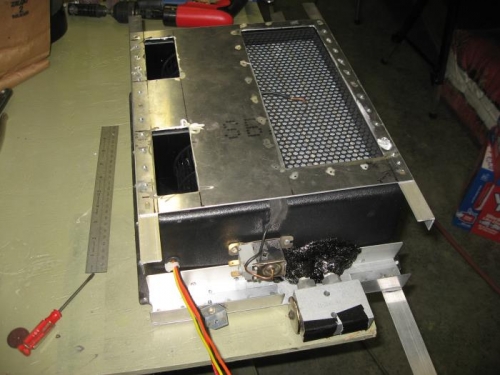 Cut out the exit holes in the evaporater faceplate. Had the attach angles tacked on with a couple of rivets for easy removal.