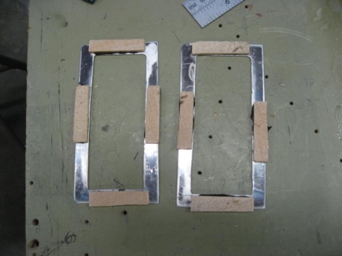 Made some 1/8" spacers to put on the face of the evaporater outlet duct flanges. These will be attached with spacers to the tailcone bulkhead so the spacing will be correct when the ducts are attached to the flanges.