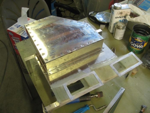 Final assembly of evaporater faceplate. All the seams were sealed with the black Dupont RTV to prevent any air from the tailcone entering into the evaporater. The condenser circulation is very well sealed too to prevent the entry of CO into the tailcone via the condenser circulation.