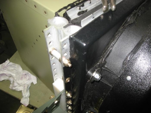 Back to working on the condenser mounts. Got the lower mount attach holes drilled out for the bolts I'm using (AN3).