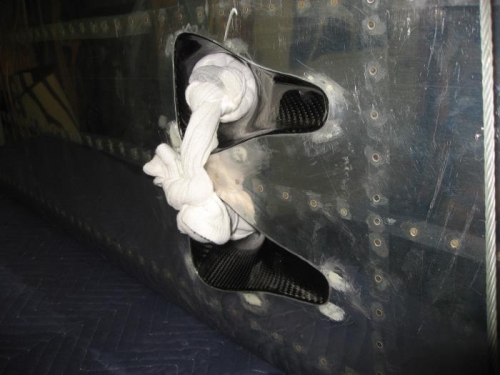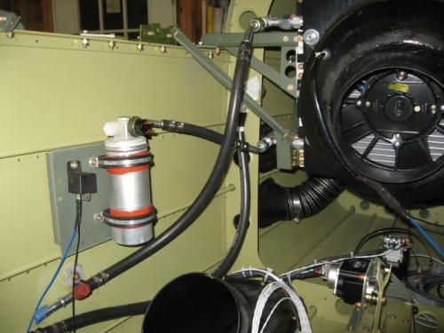 Condenser input scat tubes connected, plugged on the outside with some old socks. Connected the coolant lines to the condenser.