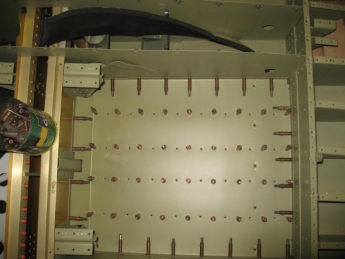 Installed the insulation under the rear floor pans. Clecoed the floor pans in place for final assembly.
