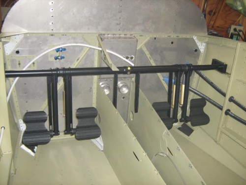 Initial install of add-on rudder pedals. They look great! Also worked on 39-4-5, getting the alignment of the elevator push-rods set up.