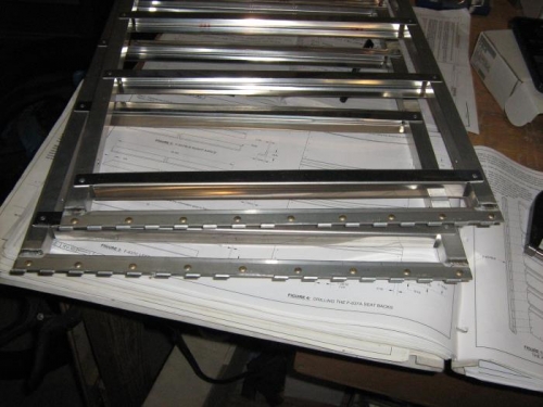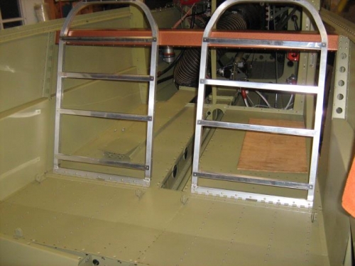 Installed the hinge halves on the bottoms of the replacement seats I bought, and got these installed. These are a nice improvement over the original seat backs in the back of the plane.