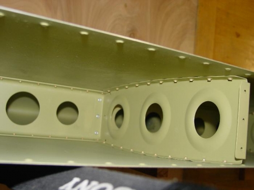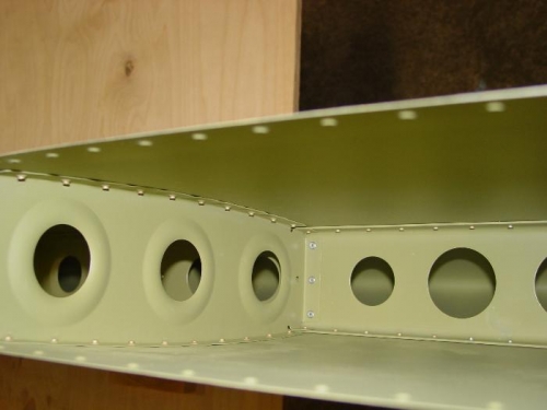 Finished riveting the stringers to the skins. The tungsten bucking bar was great for bucking the rivets that are hidden by the stringers. You kind of have to go by feel in that area, I would push my finger onto the bucked head and look at the size of the dimple in my finger to determine whether the rivet was fully set.