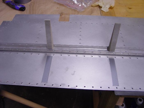 Put a bend in the trailing edge so they will lay down. Masked the locations for the trailing edge foam ribs, these will be roughed up with sandpaper later.