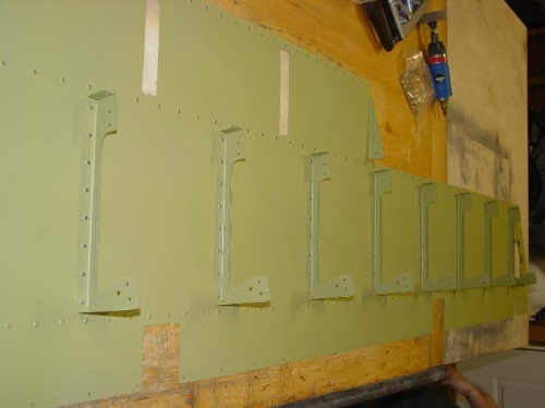 Back-riveted the reinforcement plates to the skins, and started back-riveting the rib halves to the skins. No, the kids aren't riveting parts together yet.