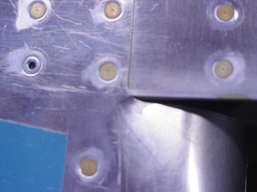 I noticed on the bottom skin of one of the elevators that I cracked the skin while rolling the leading edges. Did I mention I hate this part? It is barely visible in picture 3. Thankfully it only happened in the one spot, where the skin is coming off the tip rib, and thankfully it is on the bottom. I think I will drill a hole at the end of the crack, countersink it, and put in a flush blind rivet like the other one in the picture.