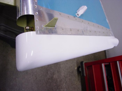 More fitting of the fairings. I had decided that at least the rudder bottom fairing should be put on with screws instead of rivets, since there will be a position light and strobe mounted there and access in the future should be considered.