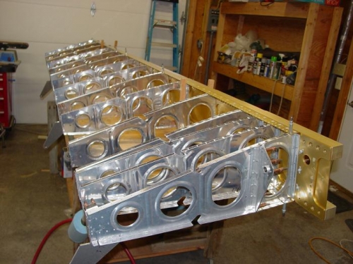 Cleco wing ribs to spars, drill for bolts and rivets.