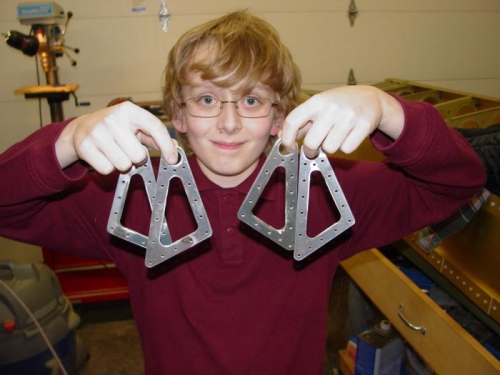 Trimmed the aileron stops off of the bracket spacers. OOPS! We weren't supposed to trim all four off, only two. Two replacements ordered.