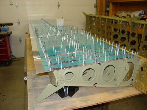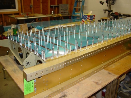 Put top skins on the wings for the first time, with doubler plates.