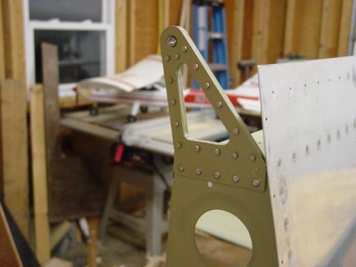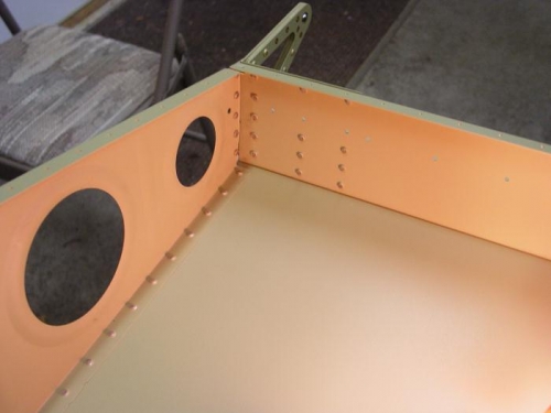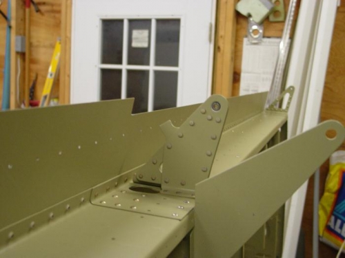 Riveted on the outboard aileron hinge brackets. This finishes the top wing skin section.