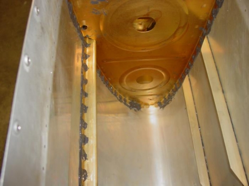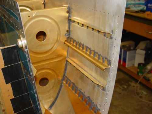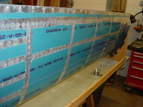 Finished riveting J stiffeners to tank skins.