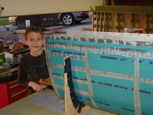 Finished riveting the baffle to the skins at the spots that were left open to ensure accurate localization.