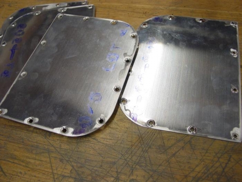 Drilling, deburring, and dimpling wing access plates.