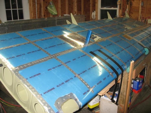 Finished riveting the bottom skins on the left wing.