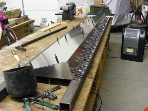 I used some .120" router bits as spacers to set the hinge position. drilled the rib positions first to #40, cleco'd, then drilled all the other holes. then drilled all the holes for the A5 rivets.