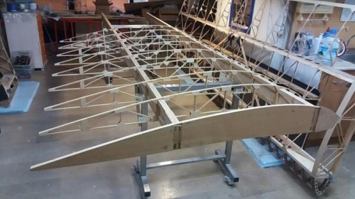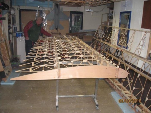 I placed the spars on the sawhorses. Measured and positioned the ribs.
