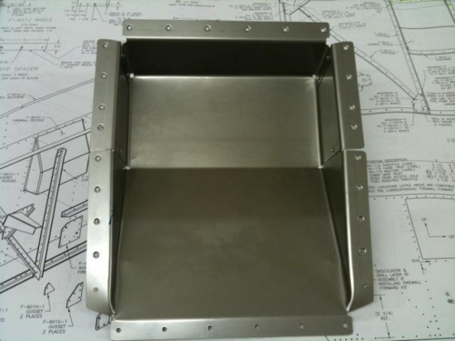 Stored the wings downstairs in the storage area and started working on the fuselage. Machined the brake line bracket, and it is ready to rivet in place. Also drilled, deburred and dimpled the firewall recess box, and it is ready to rivet in place.