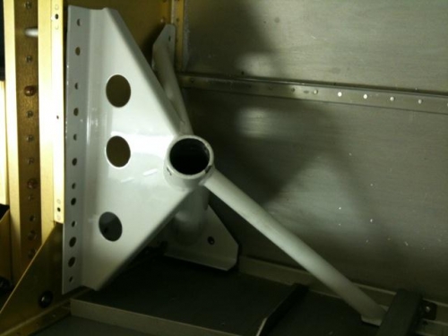 Drilled the finish hole in the landing gear to the landing gear bracket. Cut the initial hole in the fusalage for the landing gear bracket (scary). Still need a little fine tuning on the hole for a final fit.