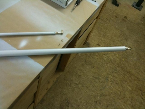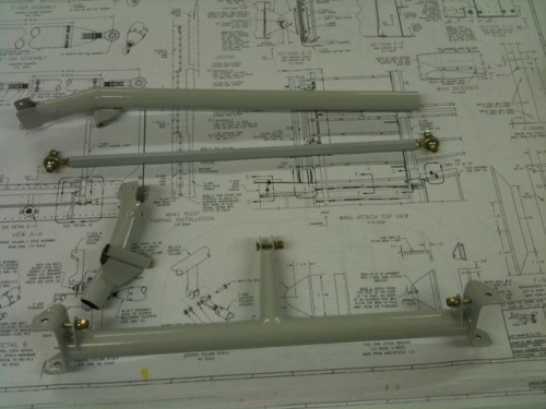 Drilled and riveted control pushrod ends. Assembled pushrods. Trimmed 2 frames where the control column fits.