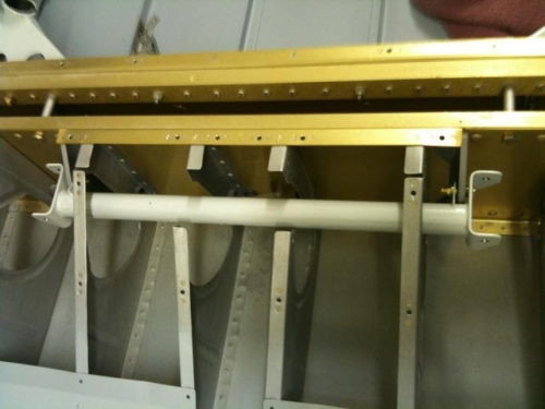 Installed control column and elevator pushrod