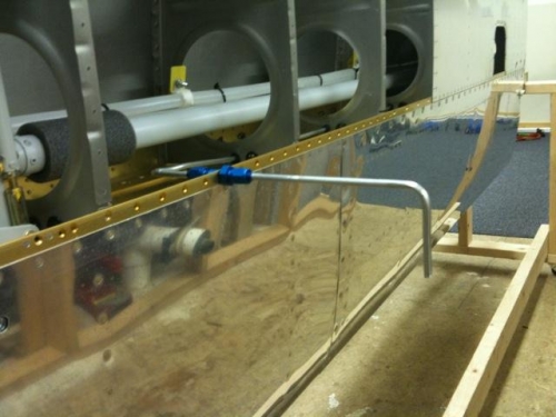 Deburred and dimpled both bottom wing skins. Also finished installing the pitot tube line in the wings and made the actual pitot tube