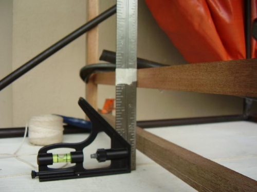 The horizontal wood was adjusted to a height of 4 6/8 ". The hight was fine tuned and taking into account of the tube diameter the required height of five (5) inches is achieved. This is the centre point.