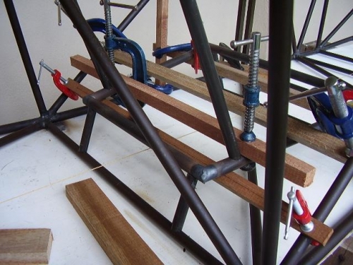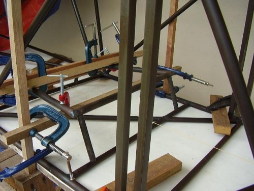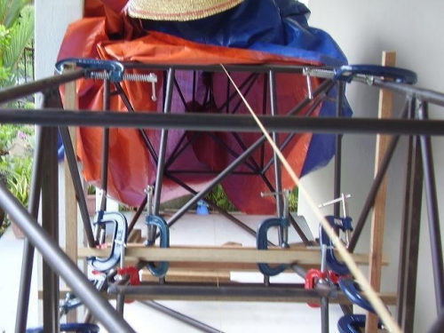 Marking was done between the seat frame and the fuselage to ensure correct postion for the seat stand and sitting back rest. Tube was then cut and placed it accordingly. Tack weld the tubing.