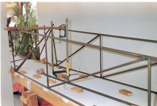 The upper horizontal tubing at the back of the cockpit was redone due to mismatch at the joint area. Another tubing was cut and both end was filed for a good fitting. At took quite a while for a fitting. Once completed the horizontal tubing was clamped with a wooden block. The vertical tube at the back of the fuselage (back seat), after proper fitting, was clamped with a wooden block. The diagonal tubing at the aft of the cockpit need further clamping to secure it properly. There is also a need to clamp the horizontal tube at the front of the cockpit supporting the undercarriage for a good fitting. AFTER TODAY, THE TUBE IS READY FOR A TACK WELD.
