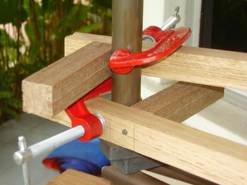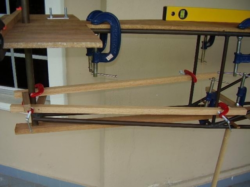 Again re alignmnet of the vertical stab and re plumbing. To ensure that the tail wheel end is correctly positioned a wooden bar was clamped to the fuselage and the the vertical stab height was adjusted.