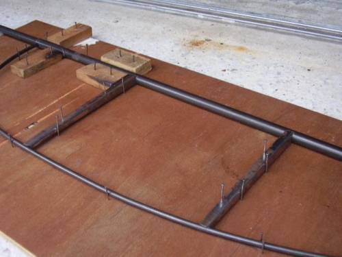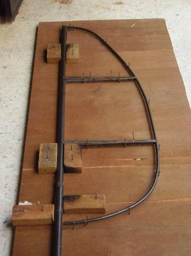 The metal ribs for the rudder was fitted at both location as indicated in the drawing and ready for tack weld. The end of the vertical tube wiil be cut later.