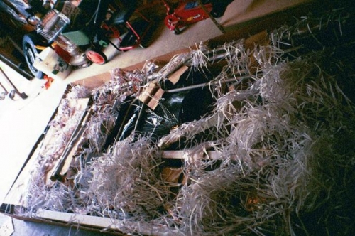 With Lori's help, I loaded the wing box onto my trailer and took it over to the hanger. I got to walk on my beautiful new concrete floor for the first time. I unpacked the fuselage box and made a total of three more trips over to the hanger with parts for