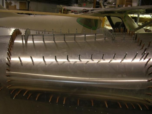 Assisted Anton in drilling top fwd skin to #40 and then up drilled aft and fwd skin to #30..