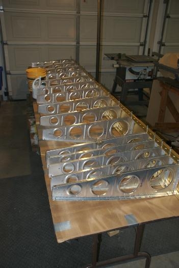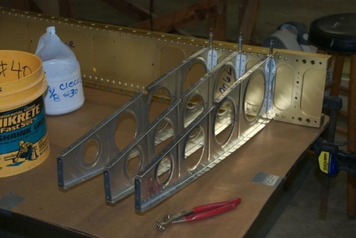 Finished fluting main ribs then clecoed main ribs to main spar and rear spar.