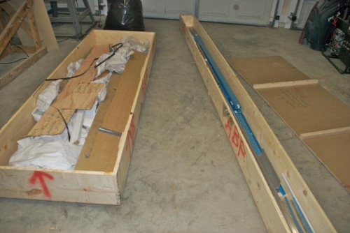 Wings arrived! ABF Trucking delivered the wings to the concrete plant before lunch. Jason and I brought the wings home on a JRM 16' trailer. Took inventory - all parts were accounted for and in good shape. The parts did not take up as much room in the garage as I thought they may, although we did move the skins to the guest bedroom bed for now. Tomorrow is our aniversary, this is the best gift ever!