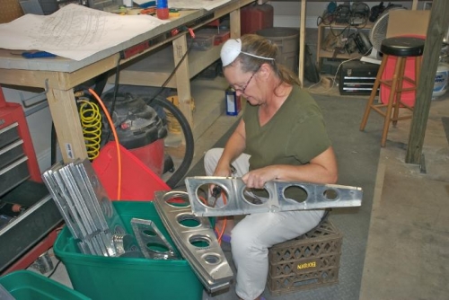 Beth used small scotchbrite wheel mounted to air tool to start deburring lightning holes in wing ribs.
