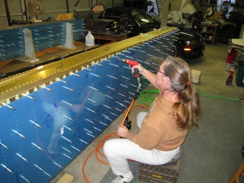 While I was working on the tank prep, Beth reamed and drilled all holes in the right wing top skin.