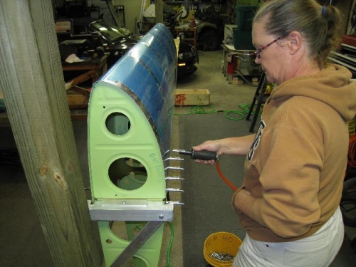 Beth & I riveted the Left leading edge skin to its frame then deburred the holes on the left main spar.