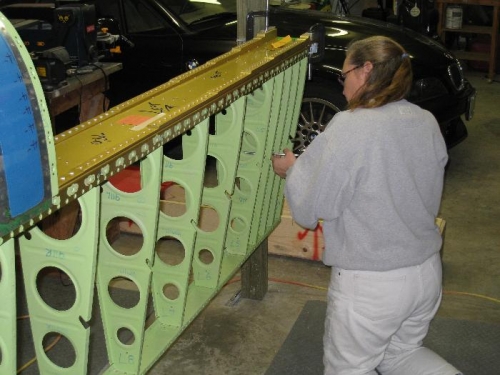 Beth deburred all of the ribs on the left wing and all of the ribs and stiffeners for the left tank and then helped me dimple the left tank skin.