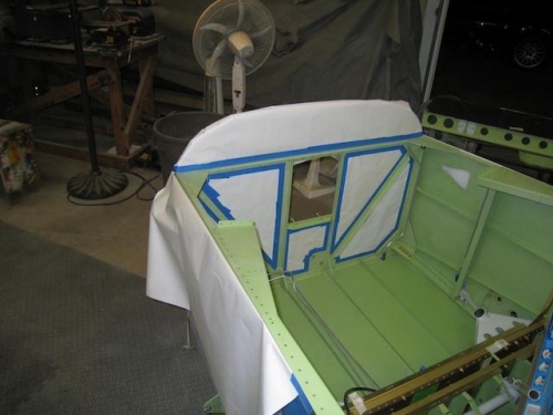 Beth masked off forward interior and scuffed for first run at paint.